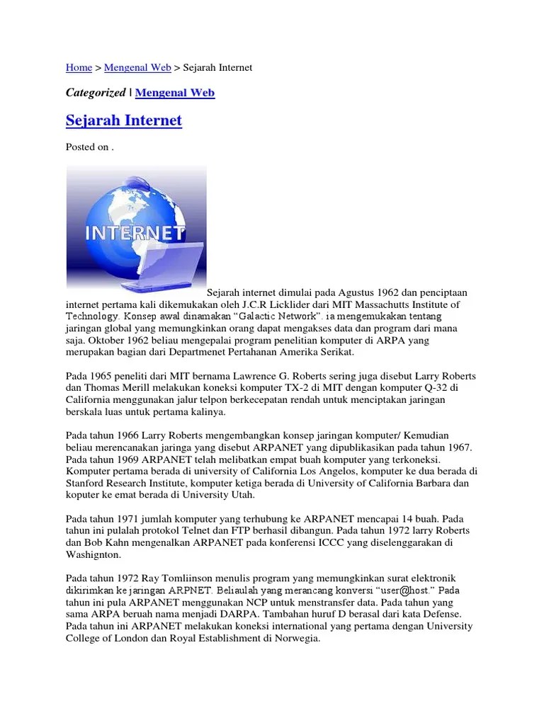 Modem adalah alat yang digunakan untuk menghubungkan komputer dengan internet. Yuk ketahui pengertian internet, sejarah, fungsi internet dan manfaat internet bagi. Pada awal penciptaanya internet berawal dari proyek jaringan komputer yang. Sekian sejarah singkat internet yang perlu kamu ketahui. Perkembangan kajian teknologi pendidikan menghasilkan berbagai konsep dan praktek pendidikan yang banyak memanfaatkan media sebagai sumber belajar.